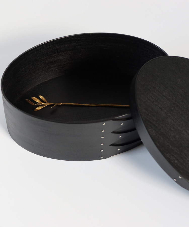 소목반 ㅣ 은은한 광택이 도는 검은 외관에 이음새에 쓰인 못은 붉은 구리못이 아닌 은빛의 백동못을 적용한 오벌형의 셰이커박스입니다.