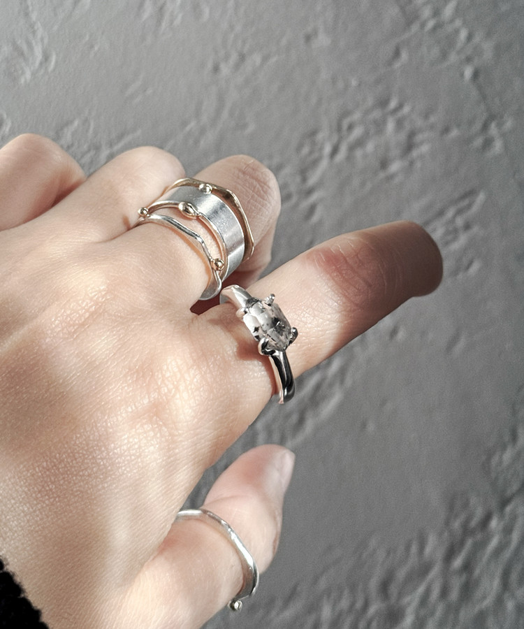 은(Sterling Silver)의 특성상 수분, 땀, 화장품 등에 자주 노출되거나 장기간 미착용 시, 공기 중의 습기에 의해 검게 변색될 수 있습니다.