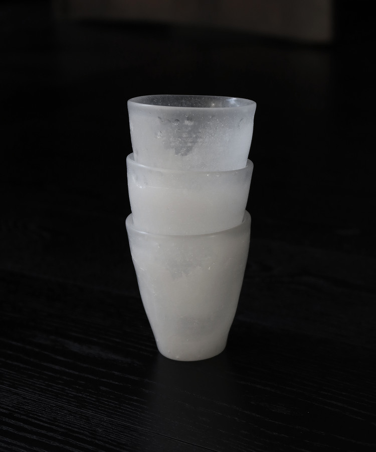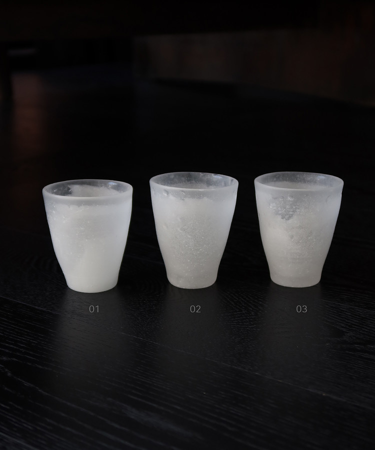켜켜이 쌓은 유리 파우더와 알갱이가 녹을 때, 공기가 섞이며 투명함과 반투명함이 공존하게 되는데, 그 사이에서 나오는 '결'이 있습니다. 그 결은 마침 눈이 쌓일 때의 무늬처럼 느껴집니다.