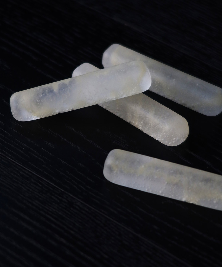켜켜이 쌓은 유리 파우더와 알갱이가 녹을 때, 공기가 섞이며 투명함과 반투명함이 공존하게 되는데, 그 사이에서 나오는 '결'이 있습니다. 그 결은 마침 눈이 쌓일 때의 무늬처럼 느껴집니다.
