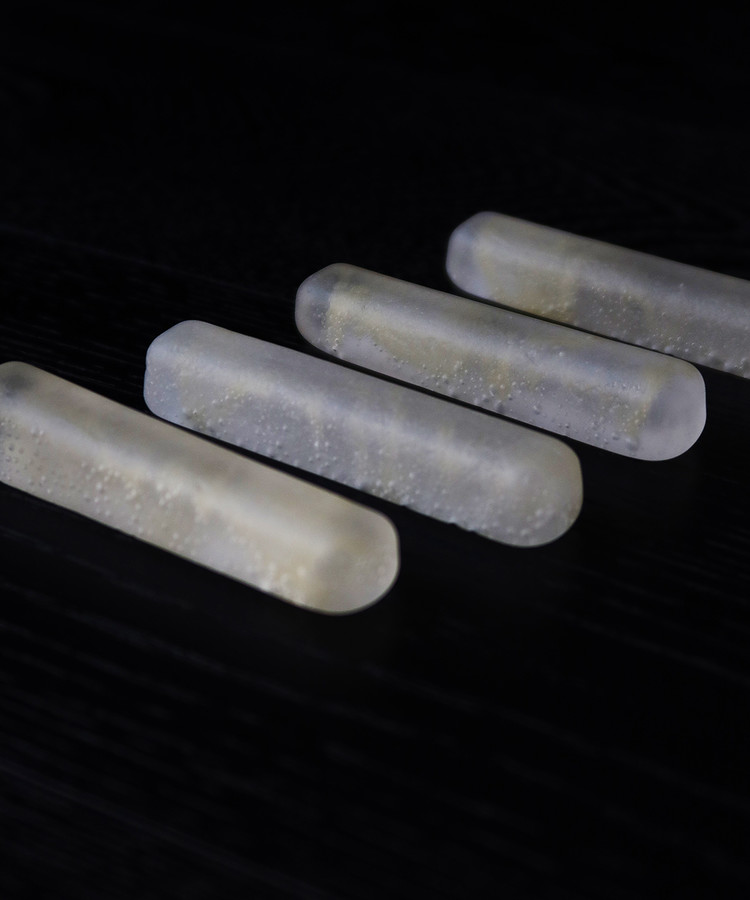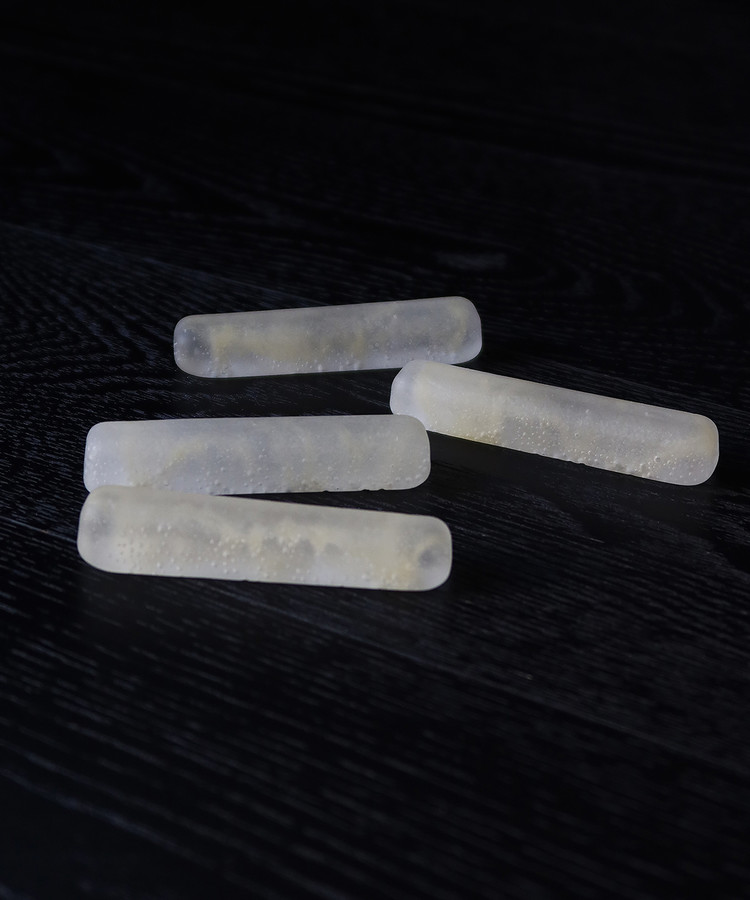 - 유리캐스팅 기법으로 만들어졌으며, 처음 가마에서 나온 유리는 표면이 거칠기에 손으로 하나씩 다듬는 과정을 거치며, 오랜 기다림과 우연성, 정성스러운 손길을 통해 완성되기에 하나씩 있는 고유의 아름다움을 가진 작품입니다.