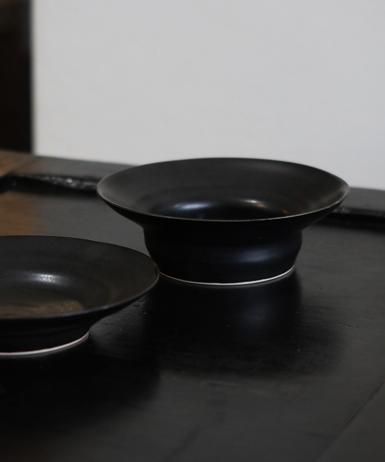 - 글로시한 블랙의 작은 디저트접시입니다.