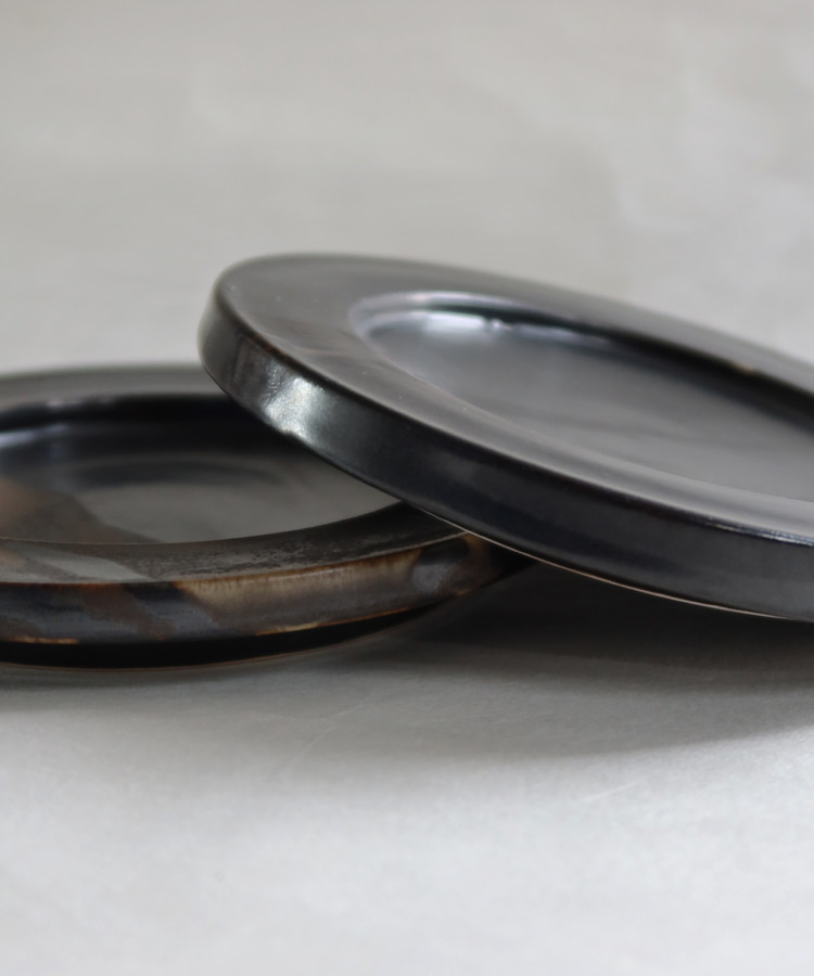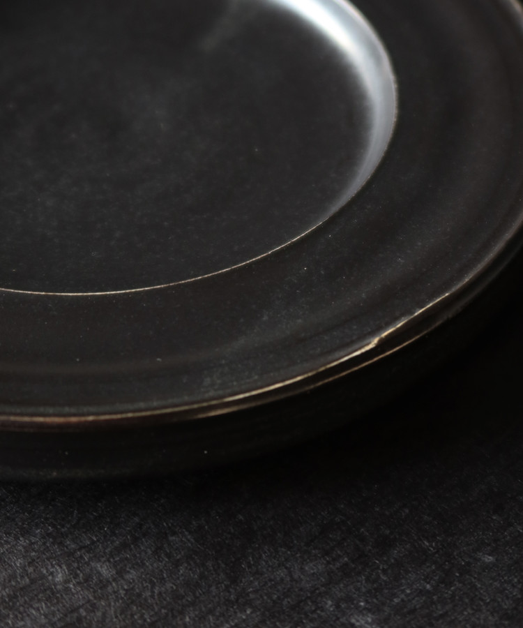 kiyo 키요 ㅣ일상기물 낮은 비례의 두툼한 검은 접시는 빛에 따라 갈색의 기운이은은하게 드러납니다.